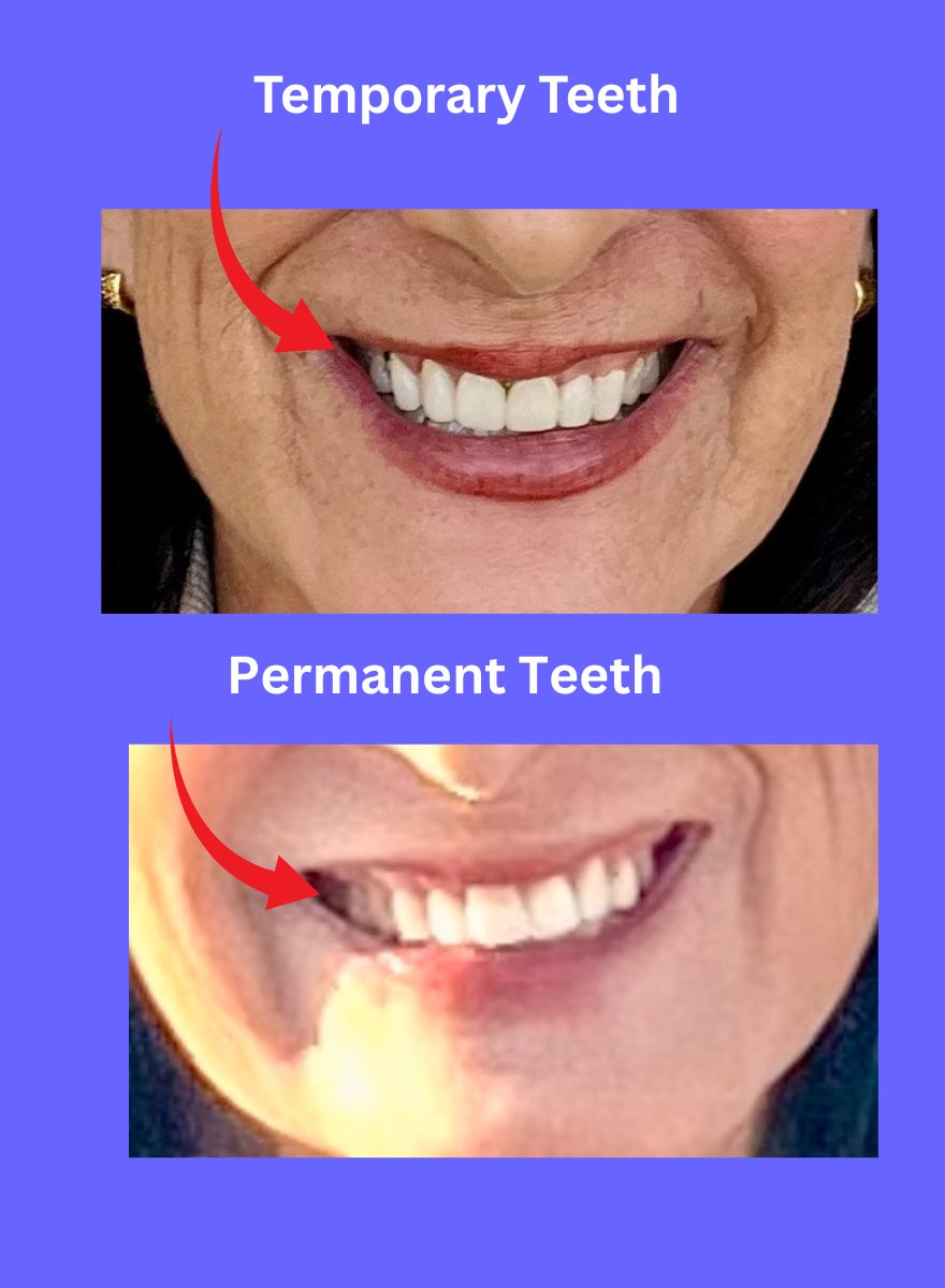 I ended up in tears in his office, devastated that I paid so much for such a terrible outcome. Dr. Richard Hada initially promised a refund, then changed his mind and left a rambling voicemail over three minutes referencing other patients’ refunds. You can see my temporary and permanent teeth in the photo above.
